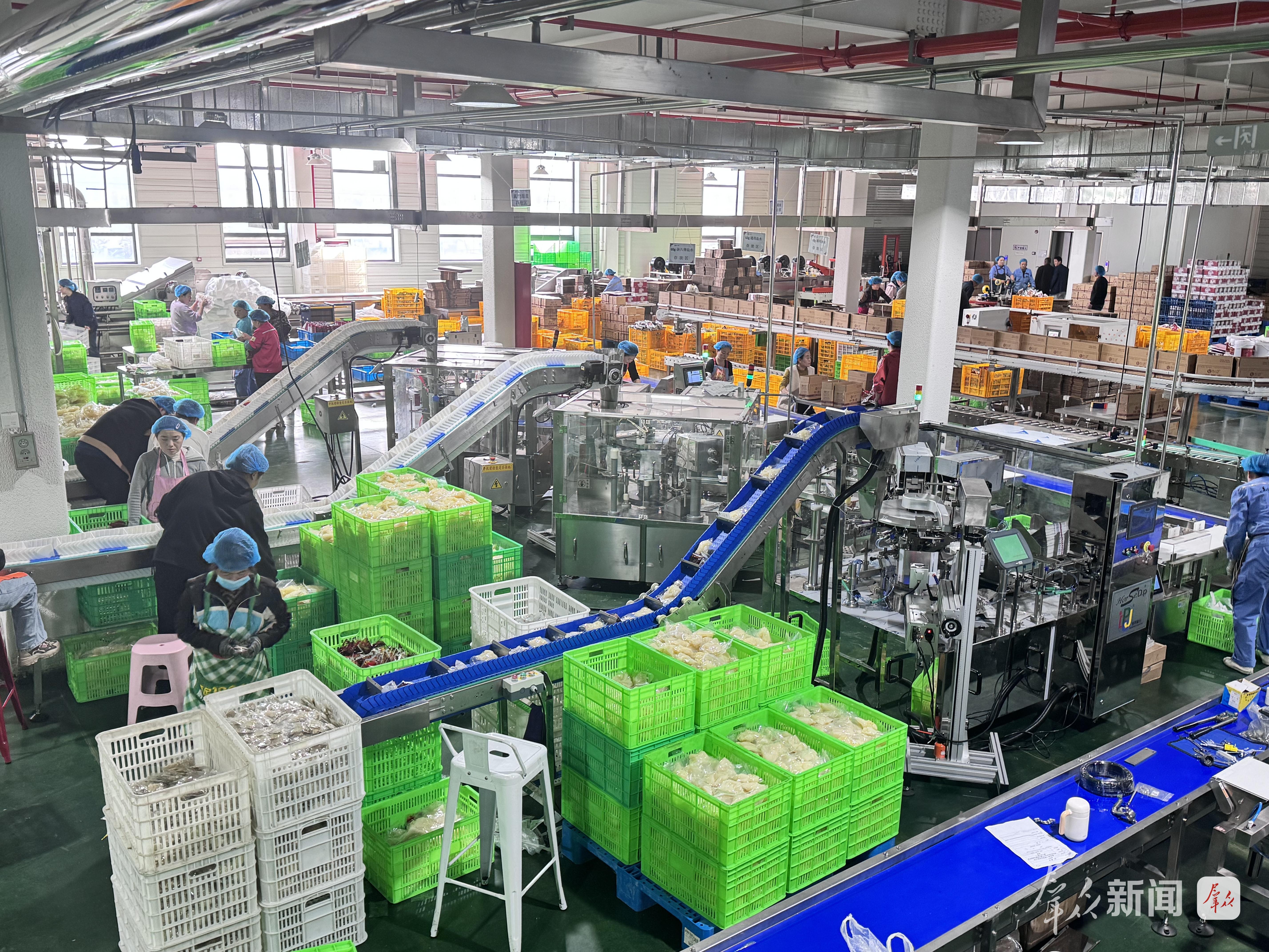 “第一跳”——产能扩大。11月21日,走进陕西杂八得食品有限公司项目车间,笔者看到,3条全新的智能生产线正有序运转。浓郁的麦香中,机械臂代替了人手,把小麦投入洗面机中,熟化好的面浆冒着腾腾的“锅气”,经过压面机的定型,一张张油光劲亮的擀面皮在传送带上缓缓地摊晾着,切好条的擀面皮经过自动分拣、精准称重,稳稳落入早已撑开的包装袋,真空包装机不停旋转,十几个舱门不间断地开合,一袋袋擀面皮就此密封完毕。
